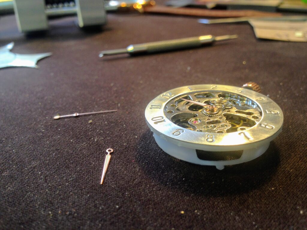 Take watch off of wrist. Hold Watch so that 12 o’clock is upright. Turn winding crown clockwise until mainspring is tight. (You can turn it backwards instead of lifting your fingers off, if you like to use a more of a twist back and forth motion. There is a clutch that allows you to turn…